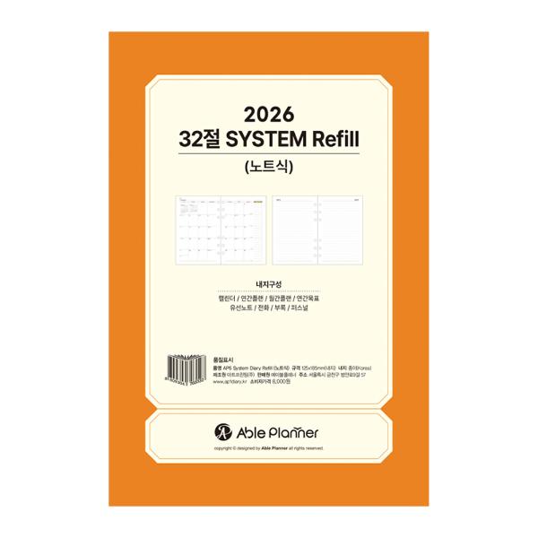2026년 시스템다이어리 속지 AP6 32절(월간+노트/AP6,AP6S 공용/0600/에이블플래너)
