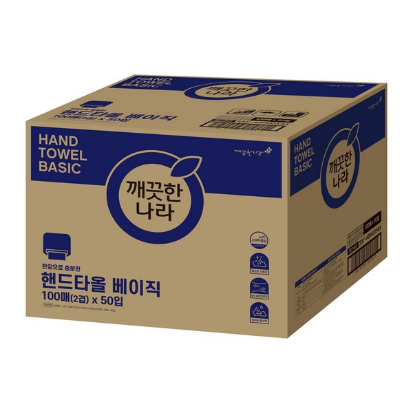 [일시품절] [P]깨끗한나라 핸드타올 베이직 5,000매(100매*50팩)