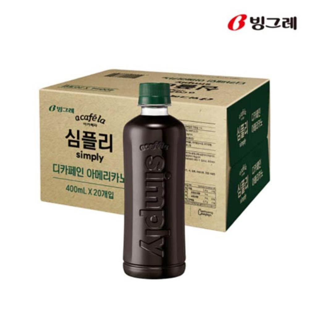 [P]아카페라 심플리 디카페인 아메리카노 400ml×20병 / 무라벨 패키지