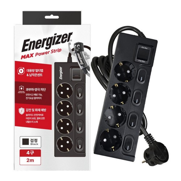 [P] 에너자이저 개별스위치 멀티탭 4구 4m - 블랙