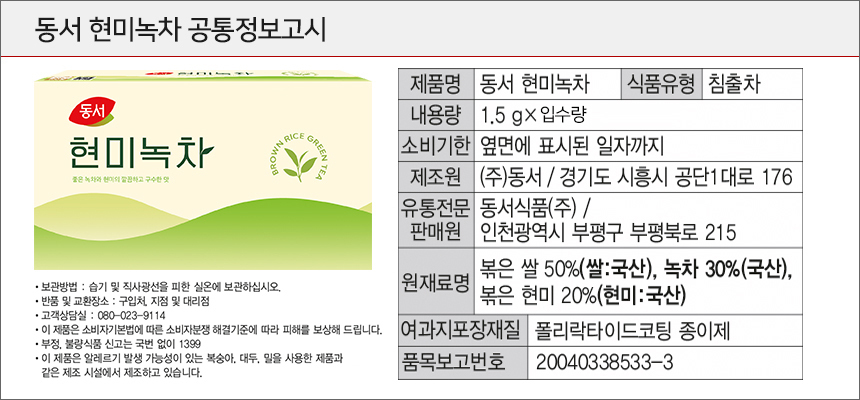 동서 현미녹차(1.5g×100T)
