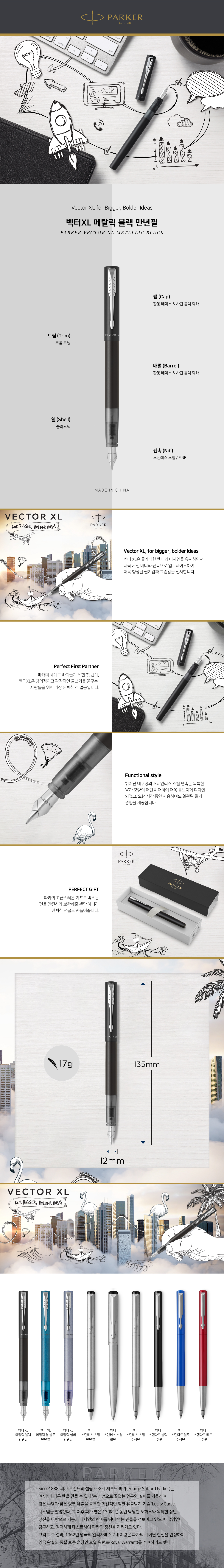 벡터 XL 메탈릭 블랙 만년필(펜촉 : F)