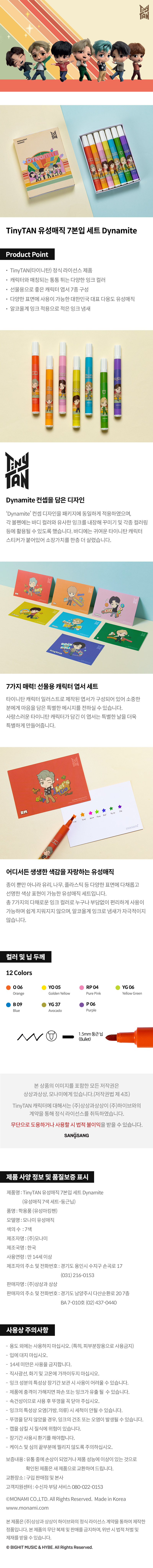 타이니탄 유성매직 7본입 엽서 세트 다이나마이트 / 1.5mm